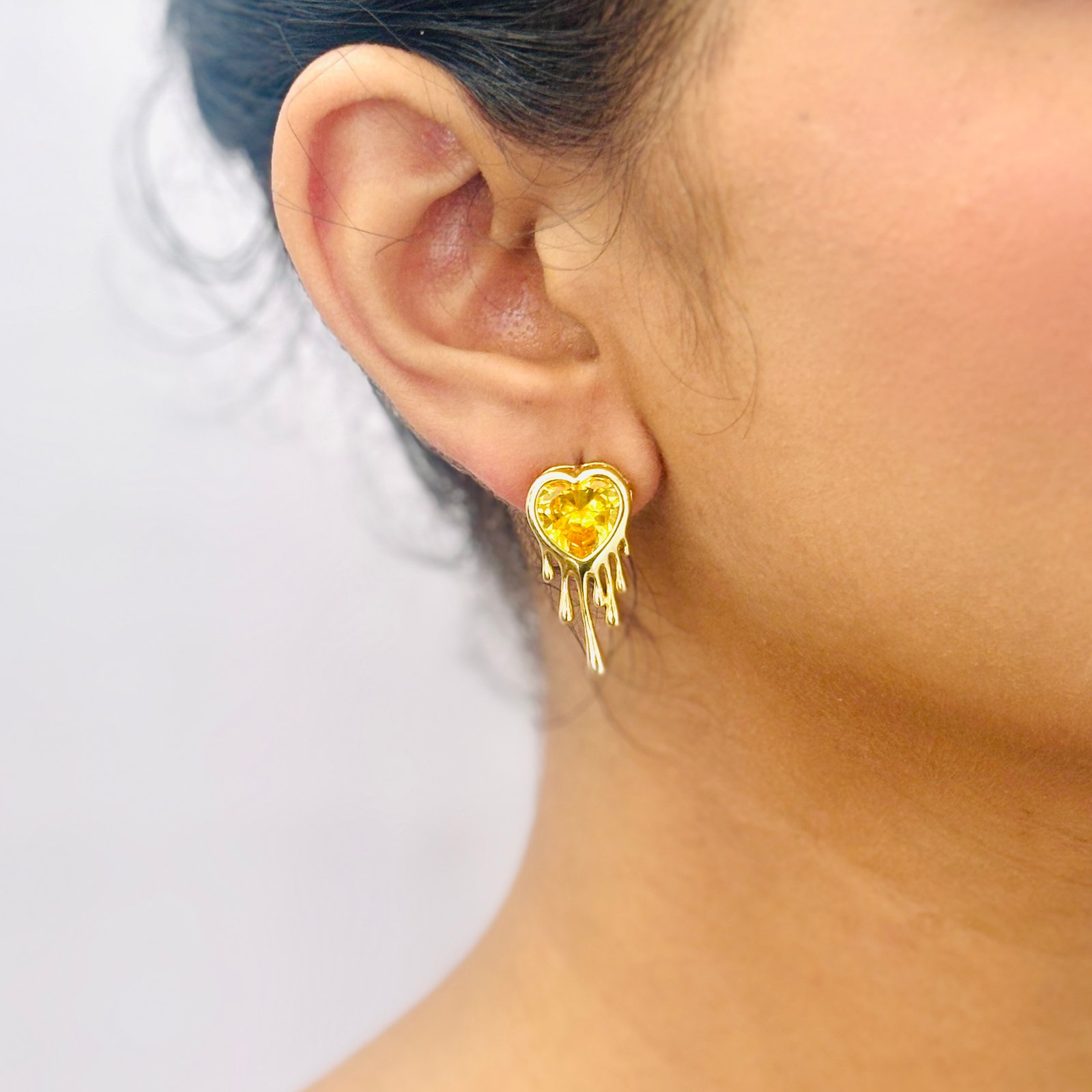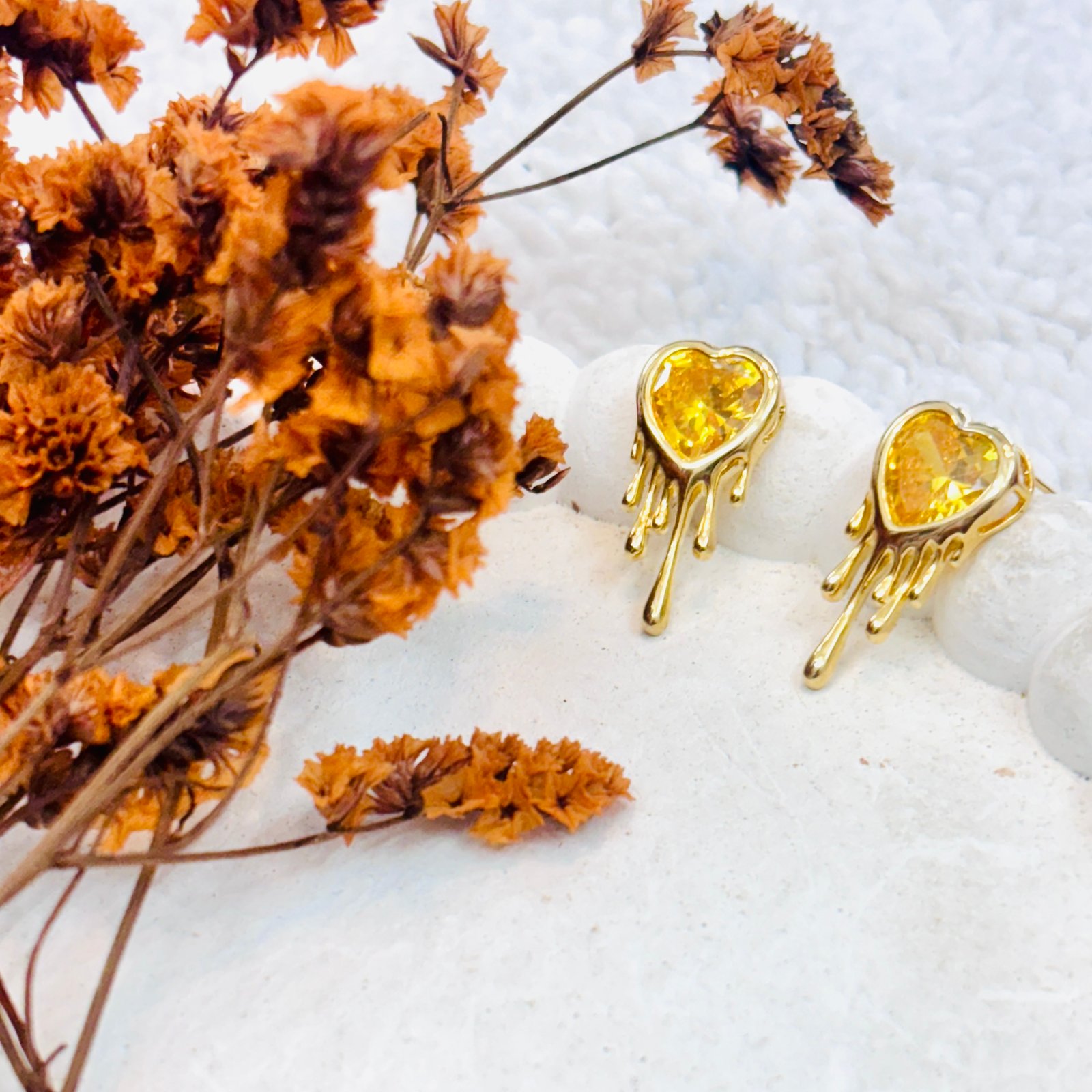 Dramatic, daring, and undeniably unique — Golden Heart captures the essence of emotion in design. Inspired by the delicate beauty of a bleeding heart, these anti-tarnish earrings feature a heart motif with a radiant yellow stone that drips like sunlight from sentiment. Crafted to turn heads and spark conversations, Golden Heart is for those who wear their style — and their heart — boldly.