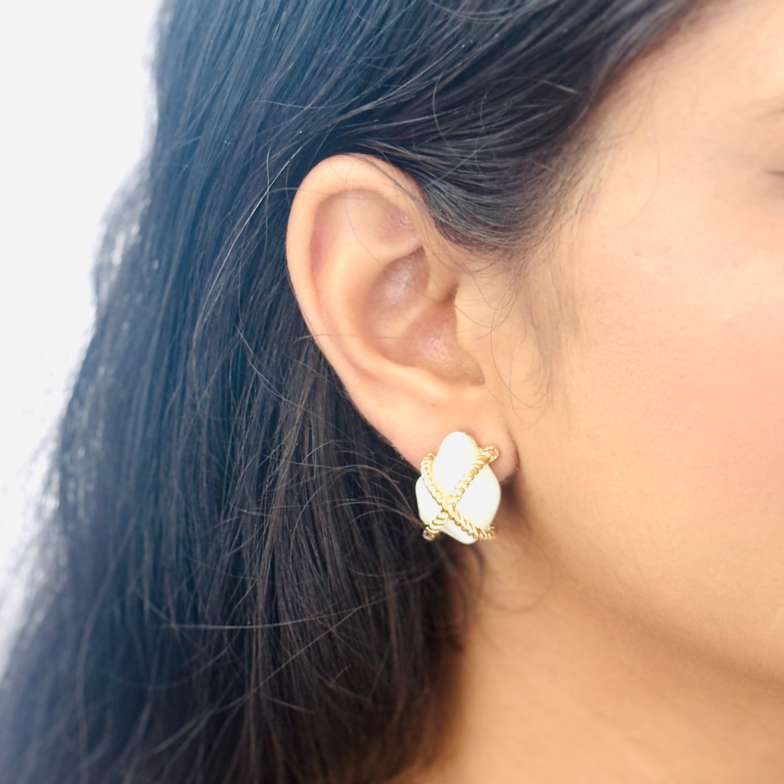 Moongold is a tribute to soft luminescence and timeless beauty. Crafted in a radiant golden finish, these anti-tarnish, waterproof earrings are adorned with natural mother of pearl that glows with a moon-like shimmer. Lightweight and durable, they offer everyday elegance that won’t fade — whether you’re chasing the sun or dancing under moonlight.